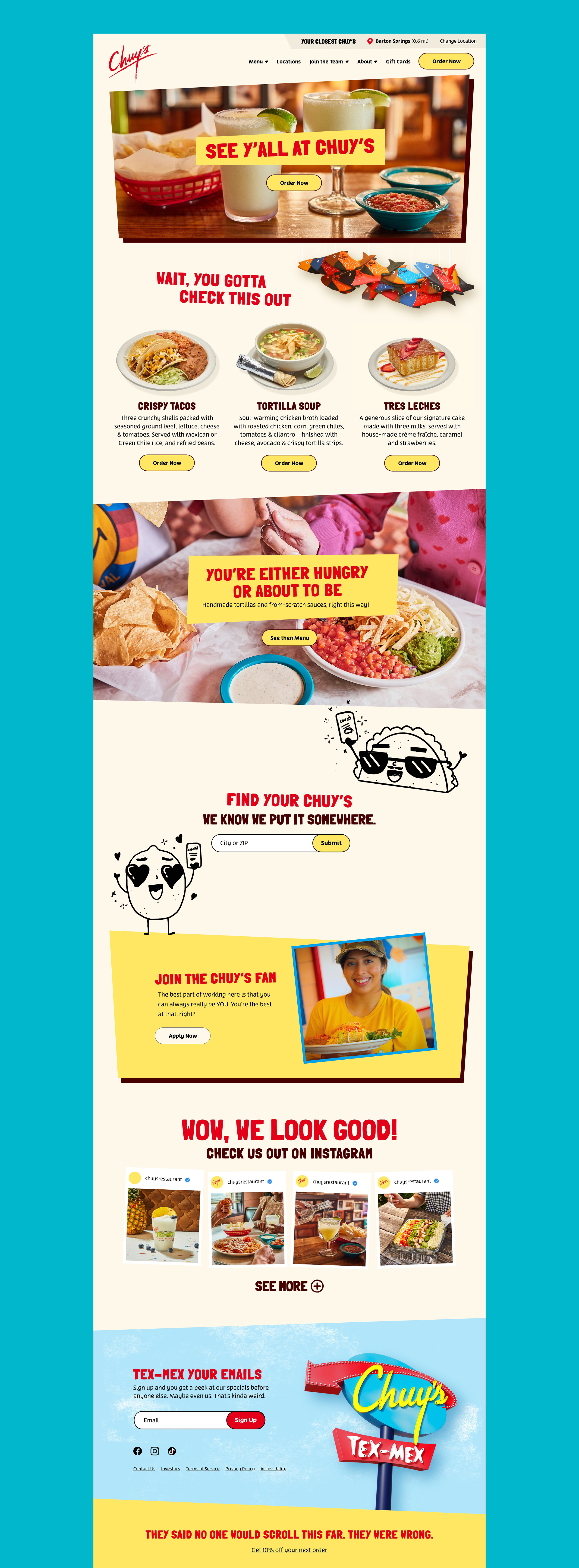 Chuy’s has been an Austin staple since 1981, but its brand identity had never been clearly defined. Our goal was to bring the full Chuy’s experience to life, capturing the handmade feel of the food, the vintage artwork, the bold colors, and the perfectly imperfect tiles that never quite line up. We wanted the brand to feel like stepping into a Chuy’s itself. As they say, if you’ve seen one Chuy’s, you’ve seen one Chuy’s: every location is unique. The challenge was to create a system flexible enough to celebrate that individuality while still delivering an unmistakable, cohesive vibe.